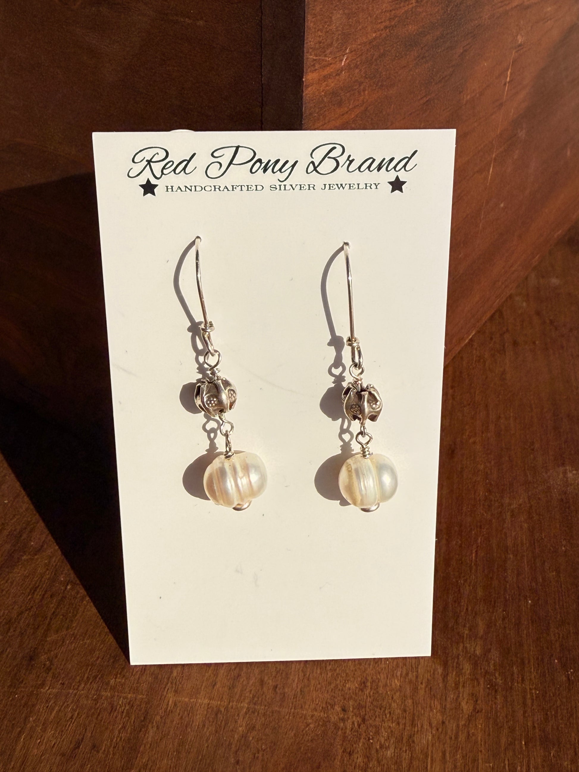 Baroque freshwater pearl and sterling silver bead dangle earrings. Sterling silver ear wires.Approximately 1.0" long with wires.