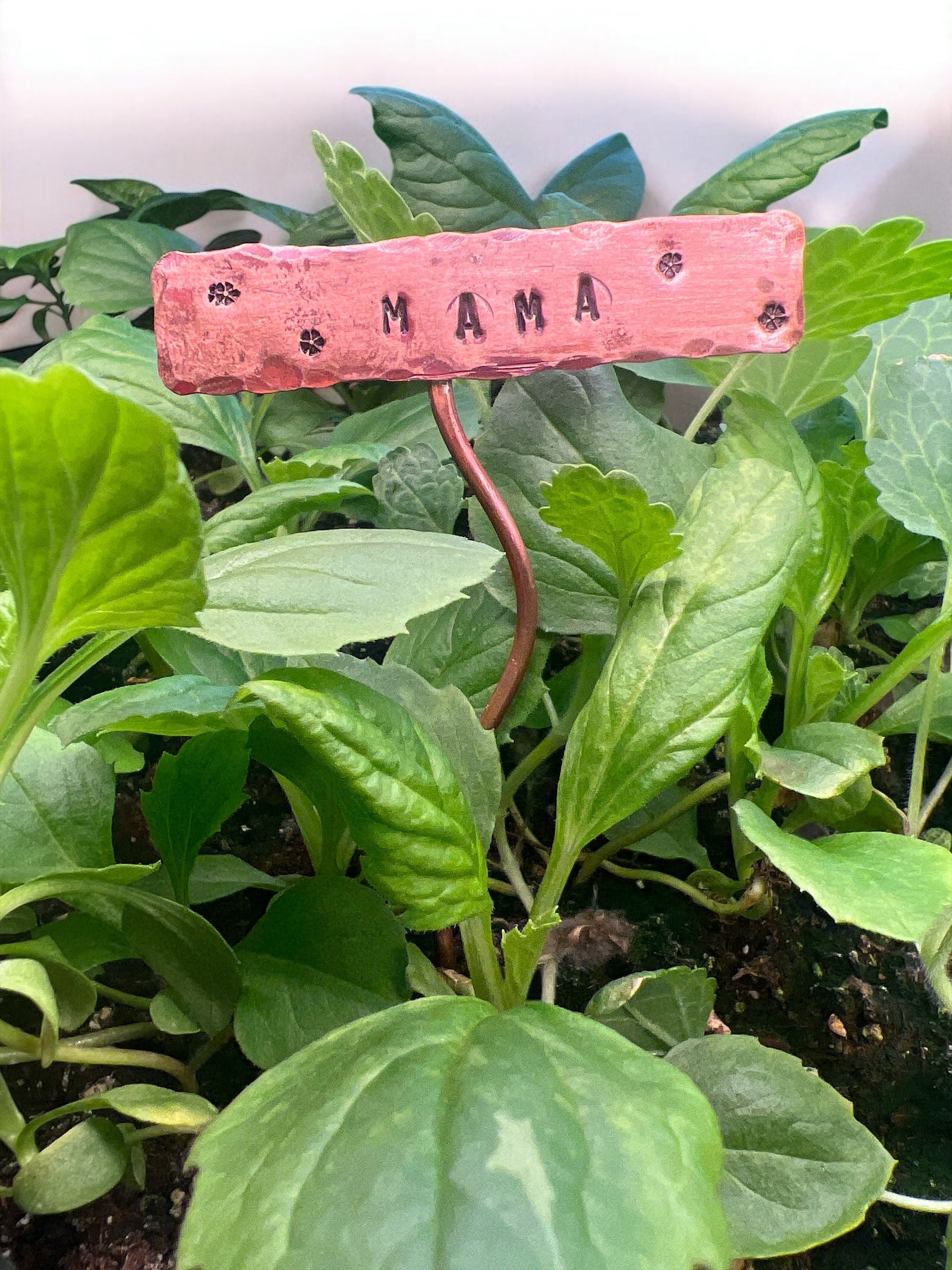 Add a warm and glowing copper sign to a plant, bouquet or anywhere you want to smile! For all the Moms and more this Mother’s Day and beyond. About 6-8” tall. Each one is a little different. Specify what saying you’d like in checkout.