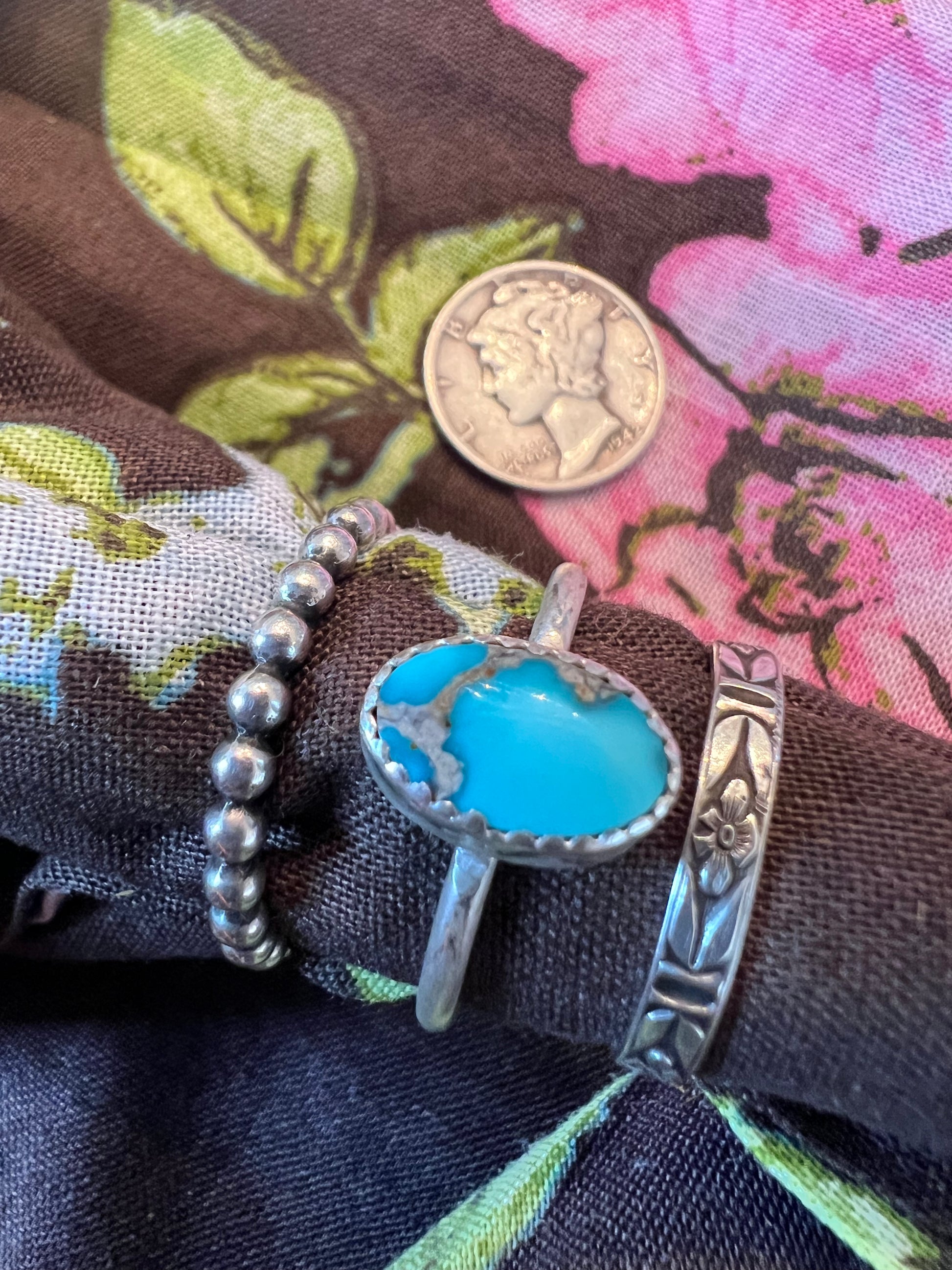 *your size! Give your size at purchase* Dainty and beautiful turquoise and sterling silver rings. Can be worn alone stacked. Change up the style! This set includes 3 rings: