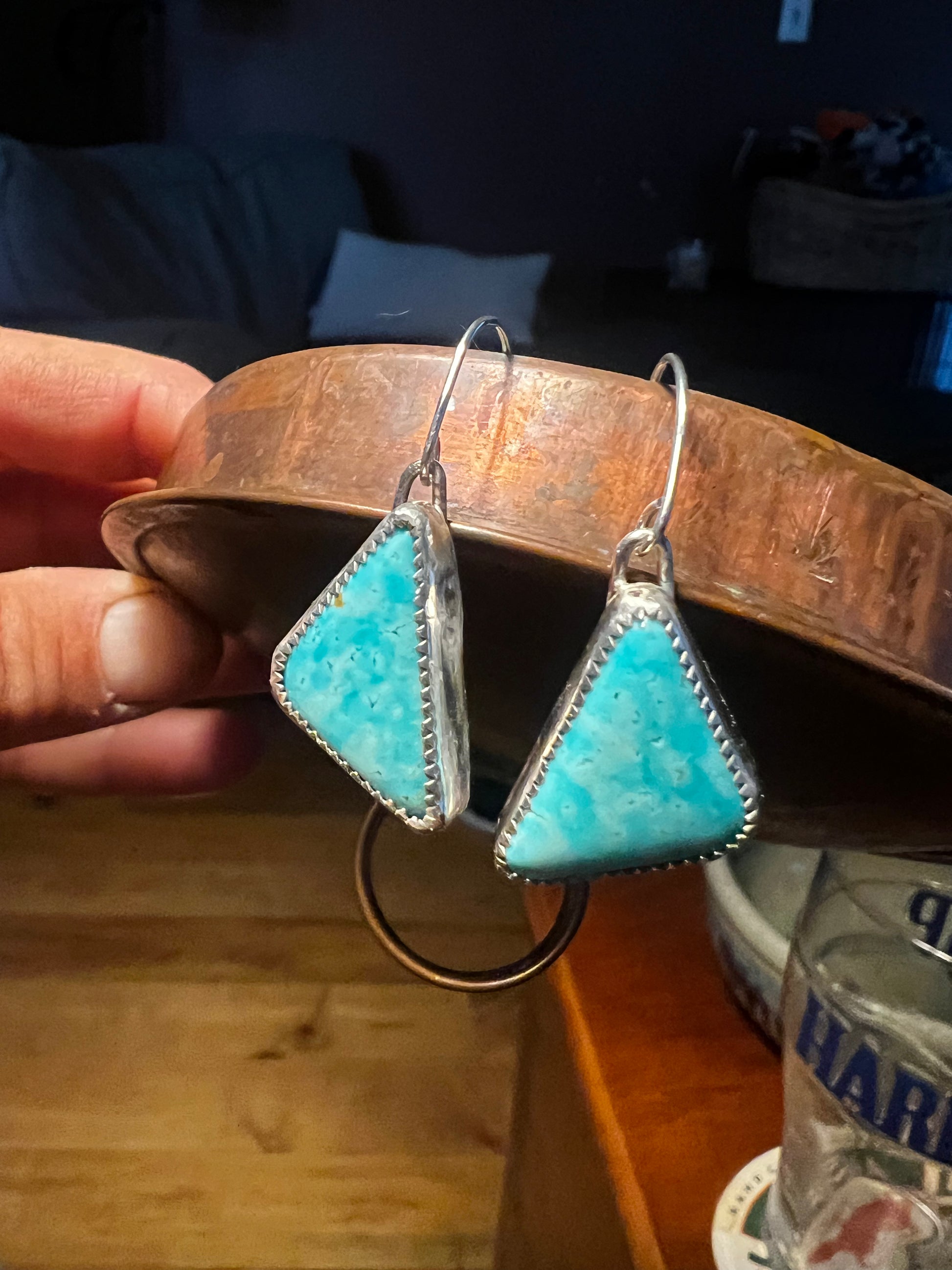 Show off your summer style with these awesome Turquoise Triangles Earrings! Featuring vibrant whitewater turquoise, they're the perfect accessory for pool parties, music festivals, and other festive outdoor events. With their bold shapes and bright hues, these luxe earrings won't be a triangle you want to miss!